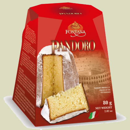 NUTRITION SPECIFICATIONS PANDORO (average per 100 g) Energy value............ 1735 KJ 414 Kcal Fat............................ 20,5 g Saturated Fat............ 12,3 g Carbohydrate............. 48,2 g Sugars........................ 19,5 g Fiber........................... 1,1 g Protein....................... 8,7 g Salt............................ 0,65 g |